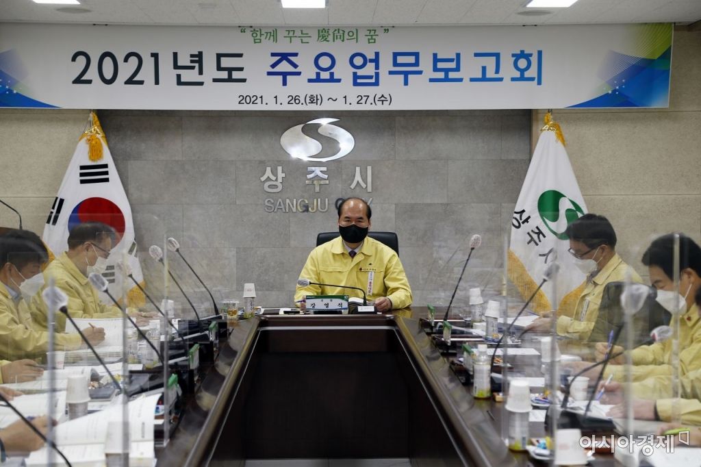 [아시아경제 영남취재본부 최재호 기자] 경북 상주시는 26에 이어 27일 시청 소회의실에서 강영석 상주시장 주재로 '2021년도 상주시 주요업무 보고회'를 이어간다.