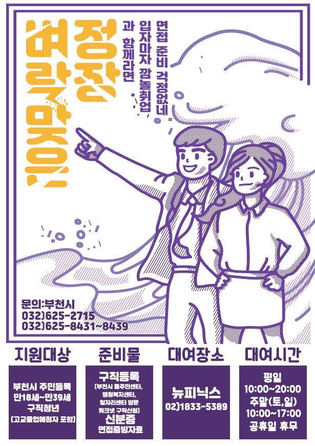 [아시아경제 박혜숙 기자] 경기 부천시가 '벼락 맞은 정장' 사업을 통해 면접 정장을 무료로 대여해주며 청년구직자의 경제적 부담을 덜어주고 있다.