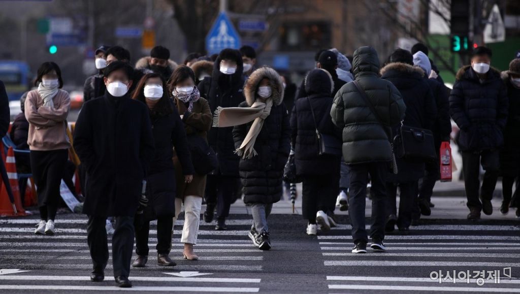 서울 전역에 강풍주의보가 발효된 28일 서울 광화문 인근 거리에서 시민들이 발걸음을 옮기고 있다. 기상청은 금요일인 29일까지 전국 대부분 지역에서 순간적으로 바람이 70km/h(20m/s) 이상, 특히 인천·경기서해안과 도서지역에는 90km/h(25m/s) 이상 매우 강하게 불겠다고 예보했다./김현민 기자 kimhyun81@