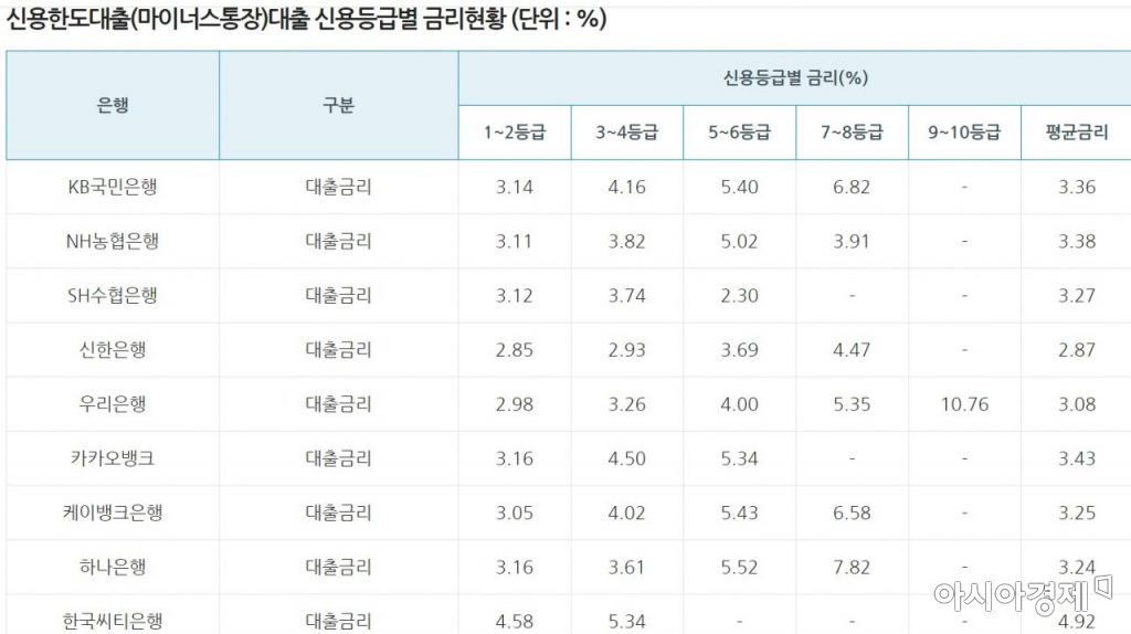 ▲아무 은행에나 가도 되나요?=마이너스 통장의 정식 이름은 '한도 대출'입니다. 약정한 한도만큼 수시로 꺼내 쓰고 채워놓을수 있다는 편리성이 장점입니다. 다만 은행별 대출 금리, 한도를 비교해야 합니다. 은행별 대출금리는 은행별 홈페이지를 참고해도 좋지만 은행연합회 소비자 포털에 한 눈에 확인할수 있도록 정리돼 있습니다.