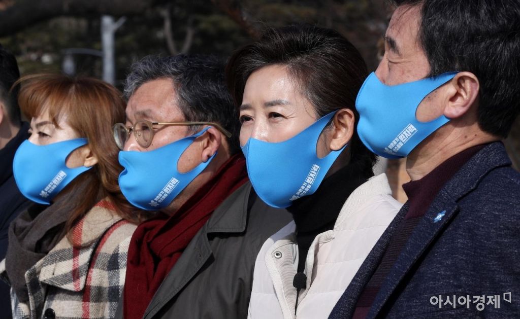 나경원 전 미래통합당(현 국민의힘) 의원이 31일 서울 종로구 청와대 앞 분수대에서 '탈원전 반대 시민단체와 함께하는 긴급 기자회견’을 하고 있다. 이들은 최근 문재인 정부가 북한 원전 지원을 계획한 문서가 언론 보도를 통해 드러나면서 현 정권의 원전 관련 이중행태를 지적했다./김현민 기자 kimhyun81@
