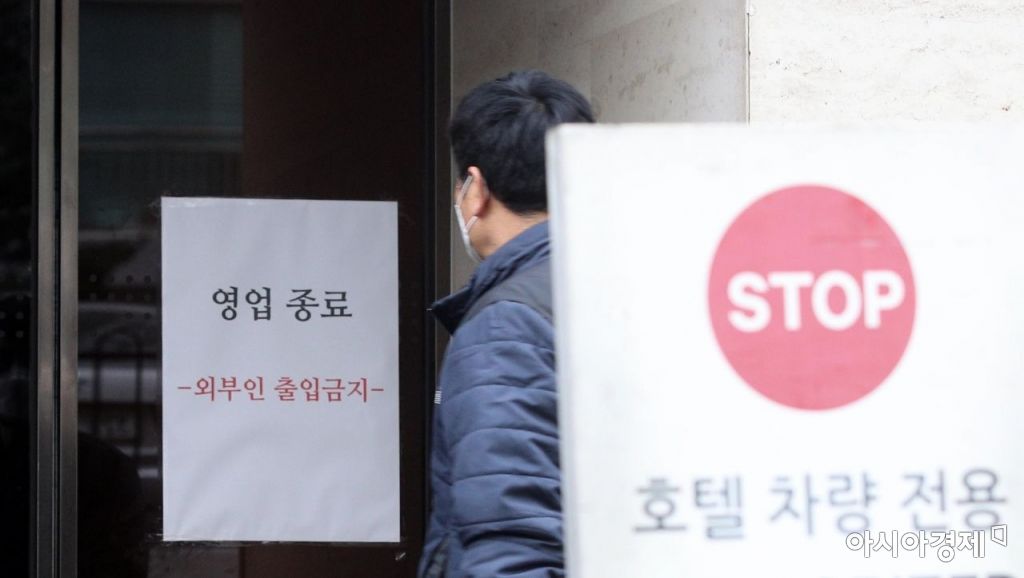 코로나19 장기화로 호텔 등 숙박업 경영난이 지속된 가운데 1일 서울 서초구 쉐라톤 서울 팔래스 강남호텔에 영업 종료 안내문이 붙어 있다. 이 호텔은 1982년 반포 팔래스호텔로 시작한 강남 최초의 특급호텔로 코로나19 확산세에 지난해 1~3분기 매출은 전년 동기 대비 40% 감소한 169억원을 기록했고, 영업손실은 19억원에서 86억원으로 껑충 뛰었다. 쉐라톤 서울 팔래스 강남은 부동산개발업체 더랜드가 3천500억원에 인수, 호텔을 헐고 고급 공동주택을 개발할 예정인 것으로 알려졌다./김현민 기자 kimhyun81@