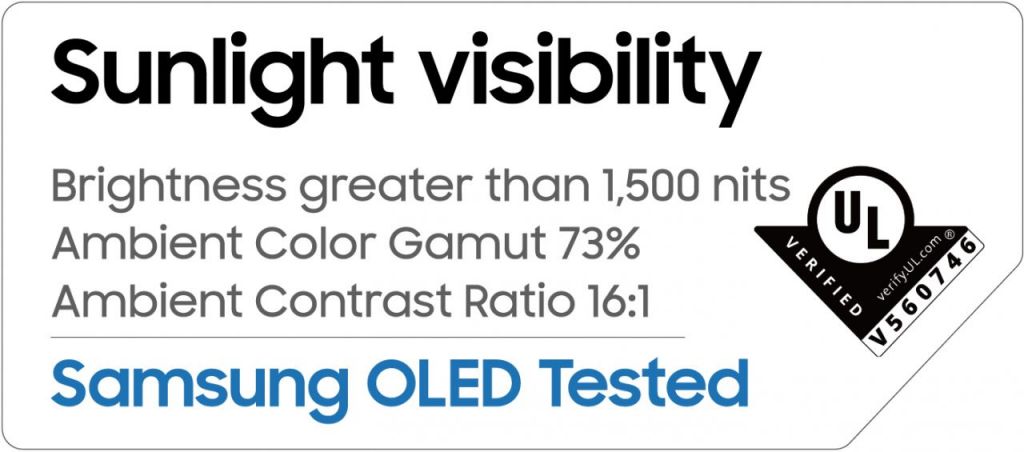 이 제품은 햇볕 아래에서도 밝고 선명하게 글자나 색을 인지할 수 있게 하는 기술이 특징이다. 삼성디스플레이는 "OLED는 스스로 빛을 내며 색을 표현하는 특성상 색영역이 넓다"며 "높은 채도의 색감을 표현할 수 있기 때문에 시인성이 떨어지는 야외에서도 상대적으로 선명한 화질을 구현해낸다"고 설명했다.