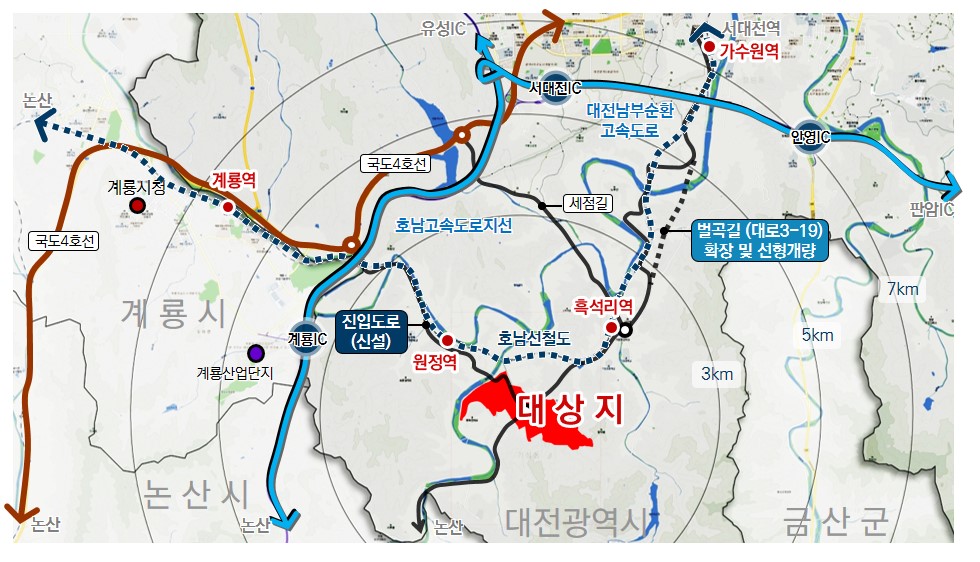 평촌산단 조성에 앞서 시는 평촌산단과 유성구 방동(국도 4호선) 일원 국도를 연결하는 산업단지 진입도로 건설도 진행 중이다. 이 도로가 개통되면 평촌산단과 서대전IC, 계룡IC 간의 접근성이 확보돼 기업유치에도 긍정적인 영향을 줄 것으로 시는 내다보고 있다.