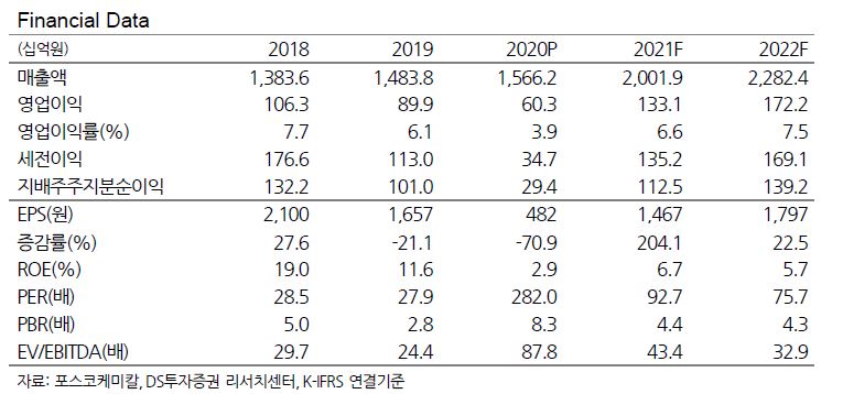 김승회 DS투자증권 애널리스트는 "코로나19 확산에 따른 철강시황 악화로 내화물과 라임케미칼 등 기존 사업의 부진이 이어졌지만 백신 보급 이후 시황 회복이 기대 되면서 기존사업 실적이 개선될 전망"이라며 "자회사 피엠씨텍 역시 중국 전기로 가동률 상승에 따라 작년 4분기 흑자전환에 성공함으로써 향후 시황에 대한 기대감을 높여주고 있다"고 전했다.