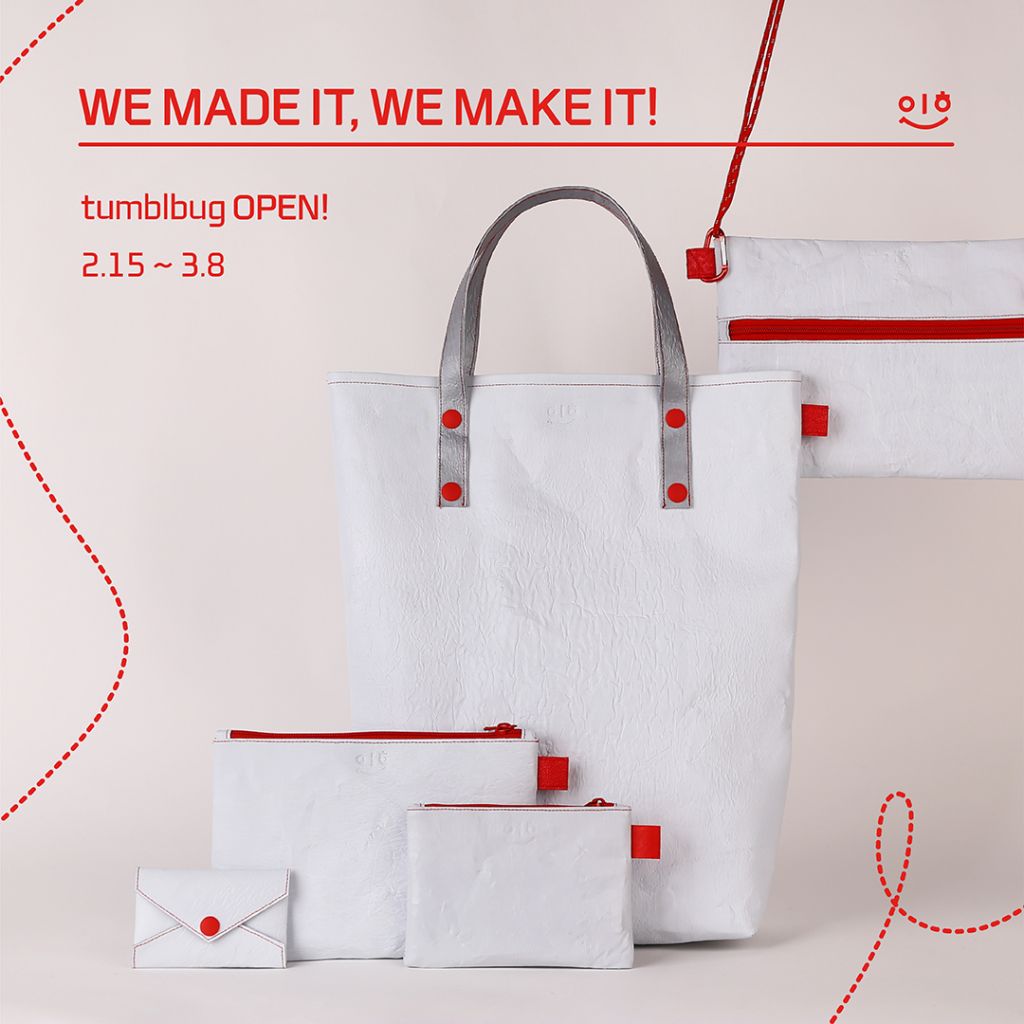 제품은 15일 크라우드 펀딩 플랫폼 '텀블벅'을 통해 공개한다. ▲토트백 ▲미니 크로스백 ▲파우치 2종 ▲카드지갑 등이다. 생산 과정에서 불필요한 쓰레기가 발생하지 않도록 사이즈는 택배 비닐 봉투 사이즈에 맞춰 정해졌다. 토트백은 중형 사이즈 봉투 6장과 대형 사이즈 봉투 1장, 미니 크로스백은 소형 사이즈 4장을 합친 크기로 제작된다.