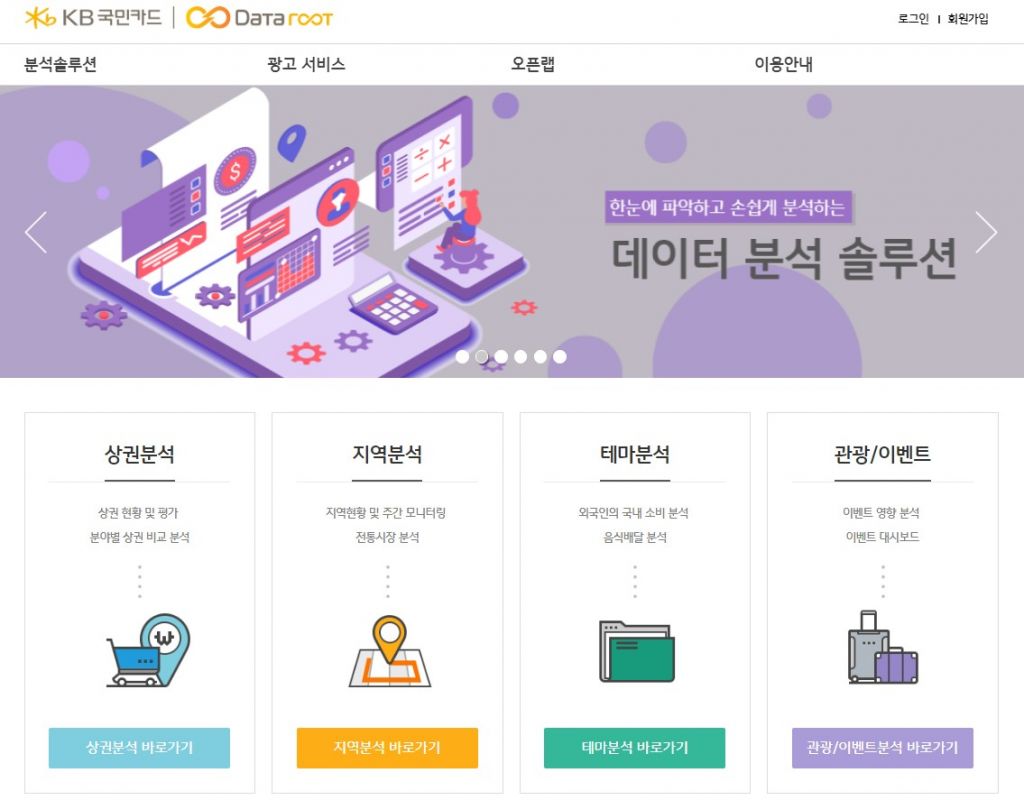 [아시아경제 기하영 기자]KB국민카드가 온라인 기반의 개방형 데이터 비즈니스 통합 플랫폼 '데이터루트(Dataroot)'를 선보였다고 16일 밝혔다.