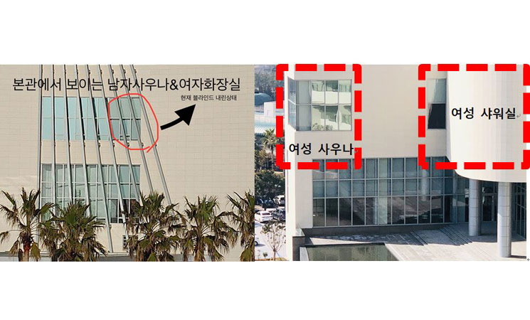 오늘(16일) 서귀포경찰서에 따르면 "그랜드조선호텔 스위트룸 여성 사우나와 화장실 내부가 외부에서 보이는 구조로 돼 있어 이용자 알몸이 노출됐을 우려가 있다"는 신고가 지난 13일 오후 접수됐다.