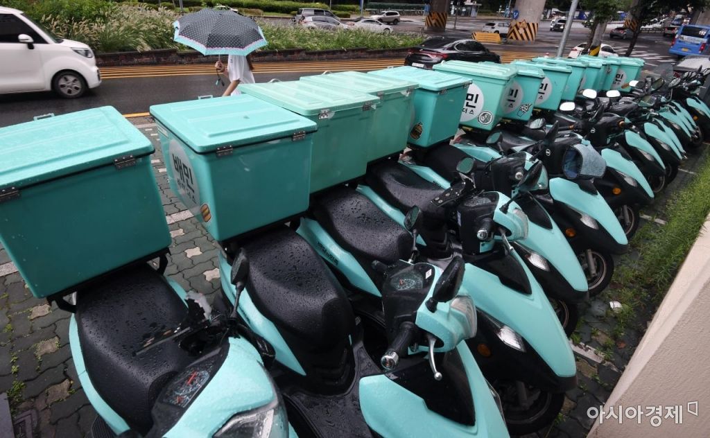지난해 9월2일 서울 시내의 한 배달대행 업체 지역 센터에 배달 오토바이가 줄지어 서 있다./김현민 기자 kimhyun81@