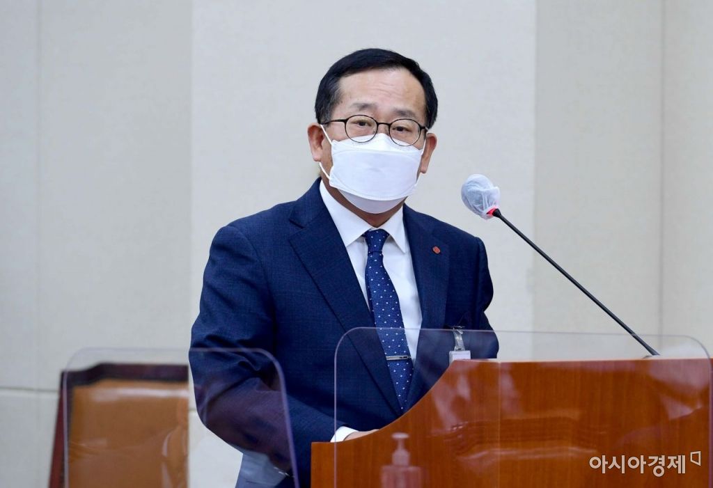 박찬복 롯데글로벌로지스 대표가 22일 국회에서 열린 환경노동위원회 산업재해관련 청문회에출석, 의원들 질의에 답변하고 있다./윤동주 기자 doso7@