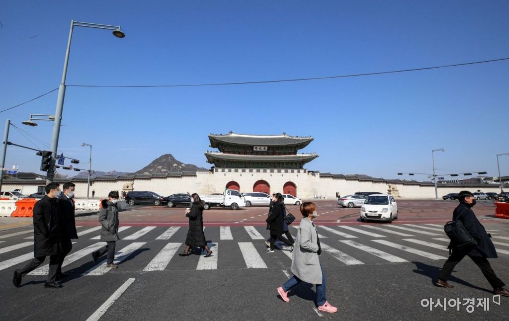 어제보다 10도 이상 떨어지며 쌀쌀한 날씨가 이어지고 있는 23일 서울 도심에 맑은 하늘이 펼쳐져 있다./강진형 기자aymsdream@