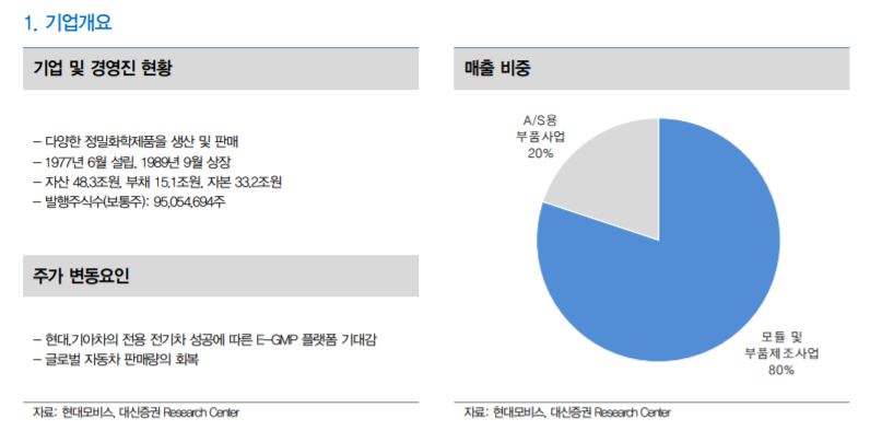 이승환 대신증권 애널리스트는 "미래 MECA(모빌리티(Mobility), 전기차(Electric), 커넥티드(Connected), 자율주행(Autonomous)산업 관련 균형 있는 사업 포트폴리오 보유하고 있으며 차세대 차량-외부 통신 제어기술 개발을 통해 향후 OTA 기능 구현이 가능해지는 등 소프트웨어 역할도 확대될 것으로 기대된다"고 설명했다.