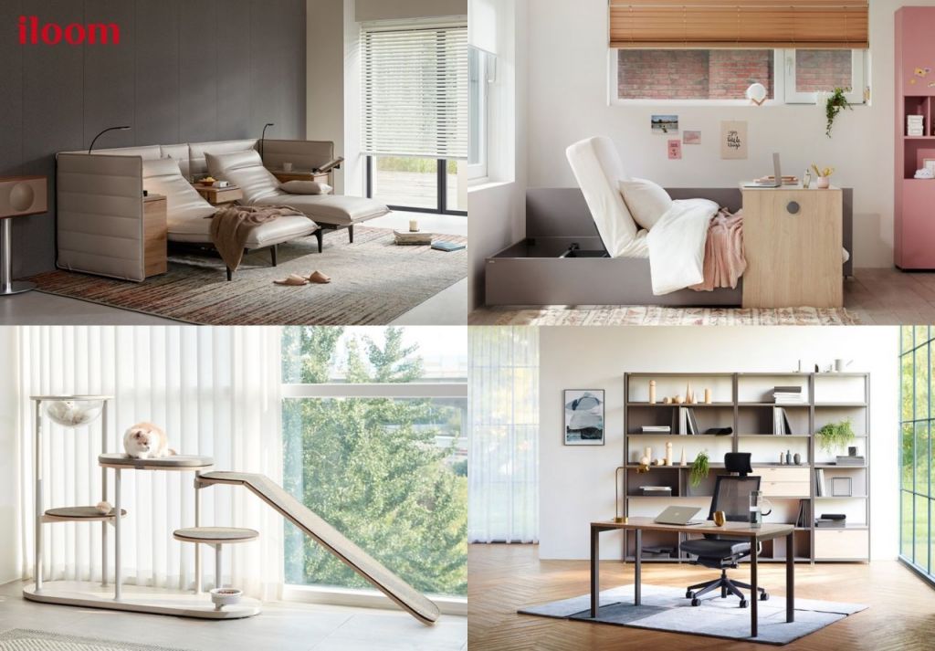 왼쪽 상단부터 시계방향으로 ▲일룸 '플라세르 모션 라운지베드' ▲일룸 '다나 모션베드' ▲일룸 '글렌 시리즈' ▲일룸 '캐스터네츠 커스텀 캣타워' [사진=일룸]