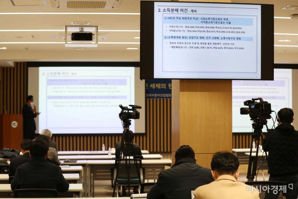 김낙회 전 관세청장이 25일 서울 서초구 자동차회관에서 열린 '제9회 산업발전포럼 및 제13회 자동차산업발전포럼'에서 발표를 하고 있다. /문호남 기자 munonam@