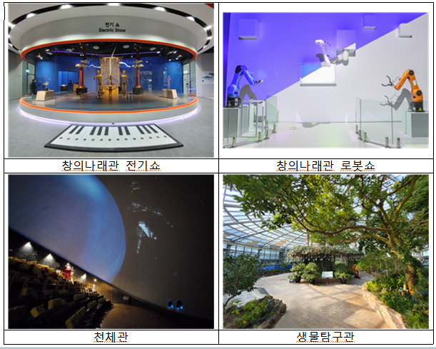 창의나래관은 신규 전시물인 전기쇼, 로봇쇼와 레이저쇼, 드론쇼를 쇼앤톡 방식의 해설 프로그램과 함께 만날 수 있다. 온라인 사전 예약제로 운영되며 하루 3회, 회차별 30명만 입장이 가능하다. 특히 신규 전시물인 전기쇼에서는 무선전력전송, 헬리컬 방전 사다리, 찌릿찌릿 정전기, 번개로부터 살아남는 방법, 번개 피아노 연주, 환상적인 테슬라 뮤직 콘서트를 만날 수 있다. 로봇쇼에서는 로봇 미디어 융합 퍼포먼스, 물병 세우기 도전, 그림그리기 퀴즈, 농구 자유투 대결을 로봇과 함께 할 수 있다.