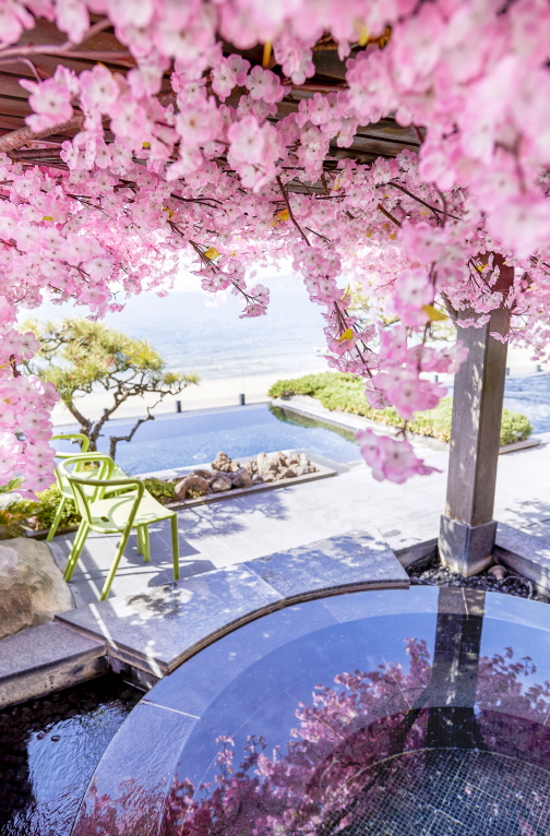 벚꽃 테마로 조성한 파라다이스호텔 부산 야외 온천 씨메르.