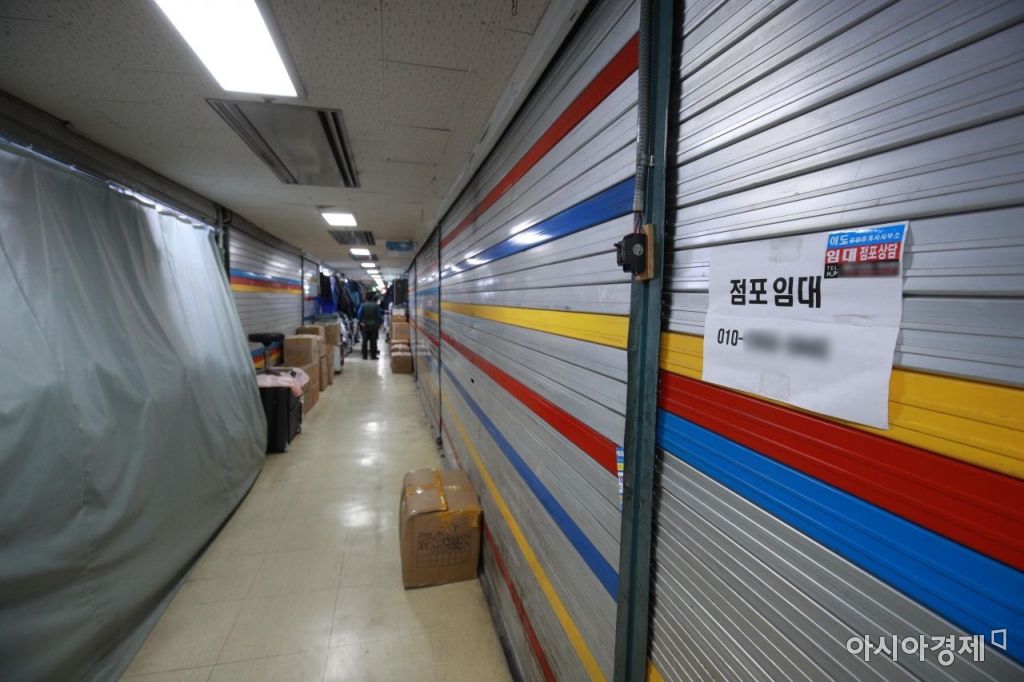 19일 코로나19 장기화 여파로 불황을 겪고 있는 서울 동대문구 패션타운 상가 내 점포에 임대 안내문이 붙어 있다. 코로나19 여파로 패션잡화로 상징되는 동대문 상가도 비어가고 있다. 상가정보연구소에 따르면 지난해 2분기 동대문 상권의 중대형 상가 공실률은 10.8%로 조사됐다. 동대문 상권 공실률은 2분기를 기점으로 계속 상승 중이다./김현민 기자 kimhyun81@