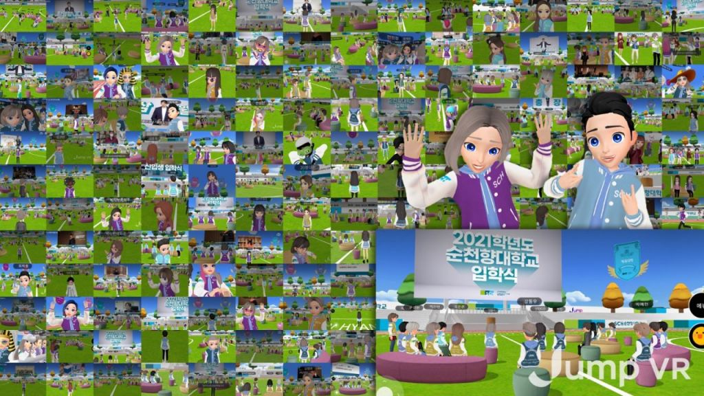 지난 2일 순천향대가 SK텔레콤의 메타버스 플랫폼인 '점프VR'을 통해 가상세계 공간에서 신입생 입학식을 개최하는 모습 [이미지출처=연합뉴스]