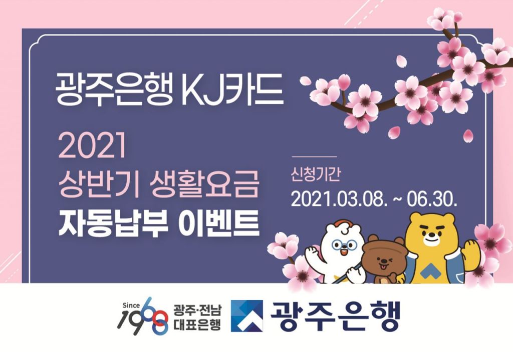[아시아경제 호남취재본부 박선강 기자] 광주은행(은행장 송종욱)은 오는 6월 30일까지 KJ카드 고객을 대상으로 ‘2021 상반기 생활요금 자동납부 이벤트’를 실시한다고 16일 밝혔다.
