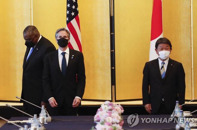 16일 토니 블링컨 미국 국무장관과 로이드 오스틴 미 국방장관은 이날 모테기 도시미쓰 외무상과 기시 노부오 방위상과 미일 안보협의위원회 회의, 소위 2+2 회담을 가졌다. 회의 후 이들은 공동 기자회견을 열고 "북한의 무력이 국제 평화와 안정에 위협이 된다는 것을 인식하고 있다"고 말했다.