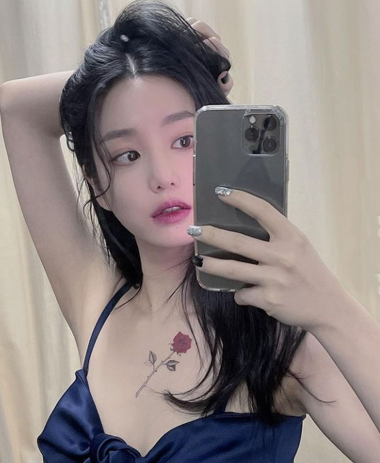 이를 본 팬들은 "유비 언니 장미 문신이 너무 예뻐요" "머지? 여신같은데?" 등의 반응을 보였다.