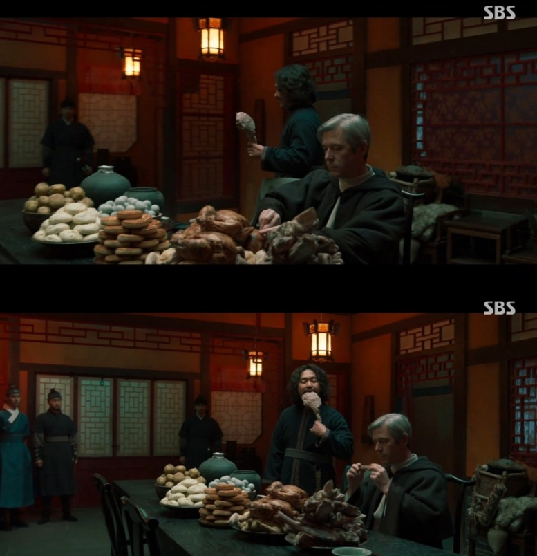 앞서 조선구마사는 첫 방송에서 극중 태종 이방원이 무고한 백성을 학살하는 장면과 구마 전문 신부 요한의 통역사가 요구한 기생집에 중국 전통과자인 월병과 중국식 만두, 피단(삭힌 오리알)등이 나와 역사왜곡 논란의 중심이 됐다.