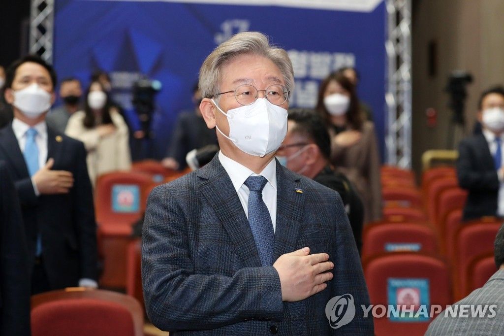 이재명 경기도지사가 지난 23일 오후 세종시문화예술회관에서 열린 '국가균형발전 선언 기념식'에 참석해 경례하고 있다. [이미지출처=연합뉴스]