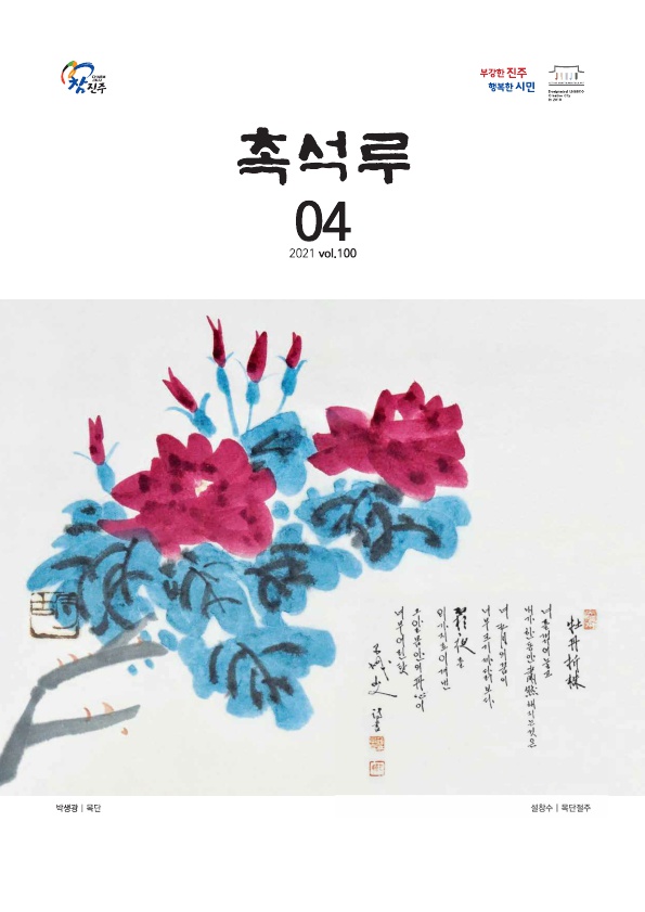 이번 호에서는 진주 출신 박생광 화백의 작품 ‘목단’을 표지에 선보여 제100호의 품격을 한껏 끌어올렸다. <촉석루>를 응원하는 시민들의 작품과 사연들이 담겨 있어 그 의미를 더한다.