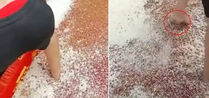 지난 3일(현지시간) 중국 한 유튜브 채널에는 광둥 대형시장에서 노동자가 잡곡을 섞는 모습을 찍은 영상이 게재됐다. 해당 영상을 보면, 한 남성이 바닥에 흩뿌려진 잡곡들 사이를 맨발로 걸어 다니며 알곡들 사이를 휘젓는다. 이 과정에서 곡식이 발바닥에 밟히기도 한다. 영상 속 노동자가 섞은 곡식들은 중국 요리인 '팔보죽'의 재료로 전해졌다.
