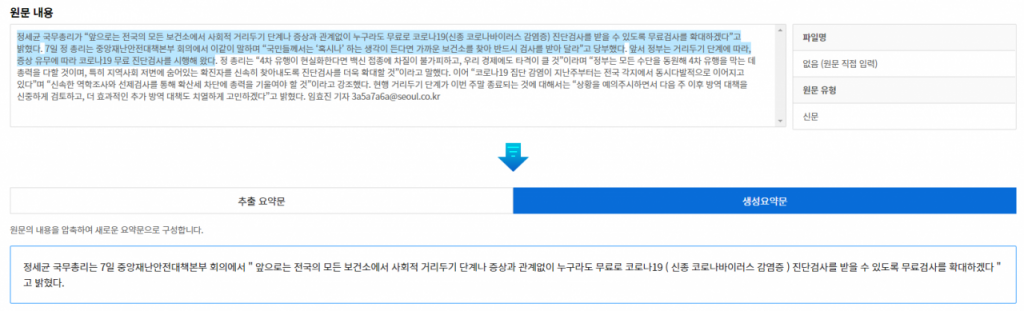 비플라이소프트와 고려대학교 강필성 교수가 이끄는 DSBA(Data Science & Business Analytics Lab)와 함께 개발한 이번 WIGO Recap의 가장 큰 특징은 검증된 원문데이터 40만 건과 요약문 80만 건의 문서 요약 학습데이터를 활용해 정확도와 신뢰도가 한층 높아졌다는 점이다. 지난해 AI 학습용 데이터 구축사업에서 우수사례로 선정될 만큼 완성도 있는 문서 요약데이터가 인공지능 학습에 적용되었기 때문이다.