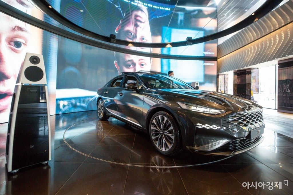 8일 서울 강남구 기아비트360에서 새로운 기아의 첫 모델 'K8'이 출시를 앞두고 취재진에 공개되고 있다./강진형 기자aymsdream@