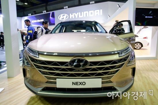 2018년 서울 강남구 코엑스에서 열린 'EV 트렌드 코리아 2018'에서 현대 수소전기차 넥쏘가 공개되고 있다./강진형 기자aymsdream@