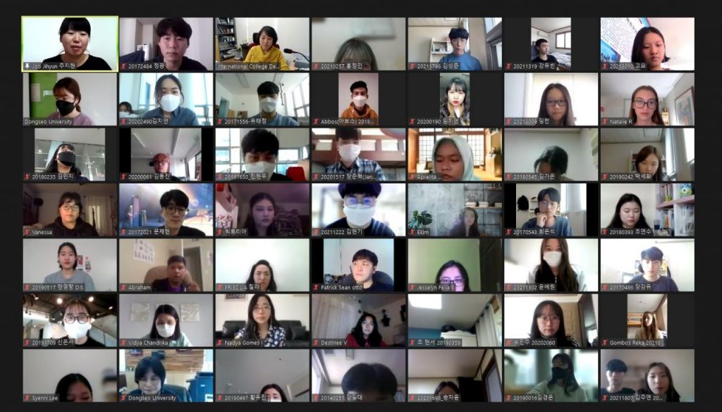 한국 학생들은 “코로나 때문에 모든 활동이 주춤했지만 ZOOM을 통해서라도 외국인 친구를 만날 수 있어서 감사한다”(송효원, DIS), “글로벌 친구들과 함께 다양한 문화를 교류하고 싶다”(조예진, 국제물류학과)는 각오를 밝혔다.