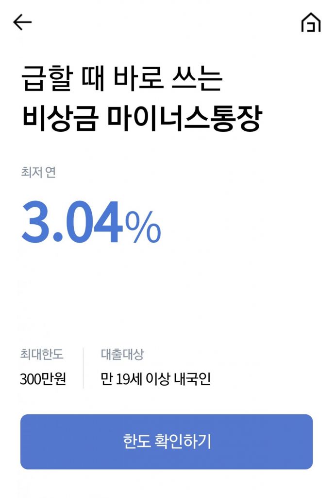 금리는 최저 연 3.04%(15일, 금융채 12개월 변동금리 기준)이며 만기는 1년, 최대 10년까지 연장 가능하다. ‘비상금 대출’은 케이뱅크 앱 ‘상품’ 코너를 이용해 신청할 수 있다.