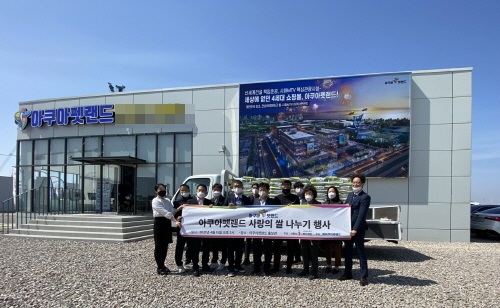 국내 최대규모 관상어 테마파크몰 ‘아쿠아펫랜드’가 착공을 앞두고 지역사회와의 상생을 위해 후원품을 전달하는 자리가 마련됐다.