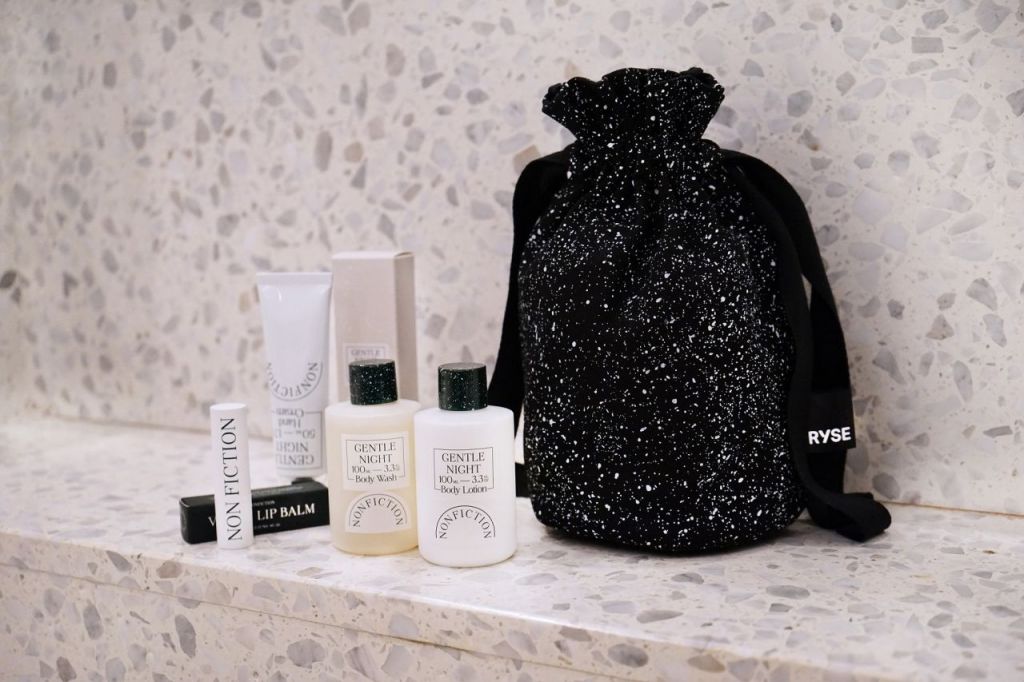 해당 상품은 라이즈 호텔 디렉터 혹은 프로듀서 스위트 룸 객실 1박에 트래블 사이즈의 바디워시, 바디로션, 단일 사이즈의 핸드크림, 비건 립밥으로 구성된 어메니티를 제공한다. 논픽션과 손잡고 선보인 패키지인 만큼 베스트셀러 '젠틀나잇' 향을 담았다. 달콤한 향과 함께 우드, 모스, 스웨이드 계열의 심플하고 상쾌한 향을 전한다. 파우치에도 라이즈 호텔 인테리어와 논픽션 브랜드 특유의 패턴을 적용했다. 여기에 2인 조식 혜택도 포함됐다.
