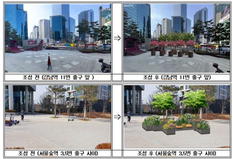 서울시는 2019년부터 움직이는 공원 조성사업을 본격적으로 시작했다. 2019년 10개소, 2020년 6개소에 이어 올해도 지하철 앞 광장, 주택가 주변 등 그늘이 없고 녹지가 부족한 곳 8개소를 선정하여 추진하게 됐다.