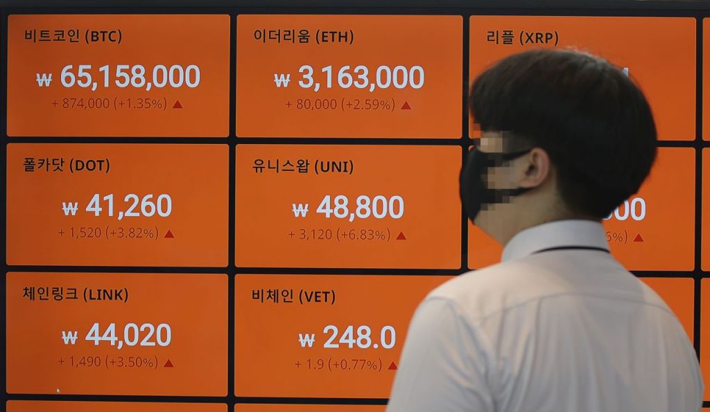 28일 서울 강남구 빗썸 강남센터 시세 전광판에 코인 시세가 표시되어 있다. [이미지출처=연합뉴스]