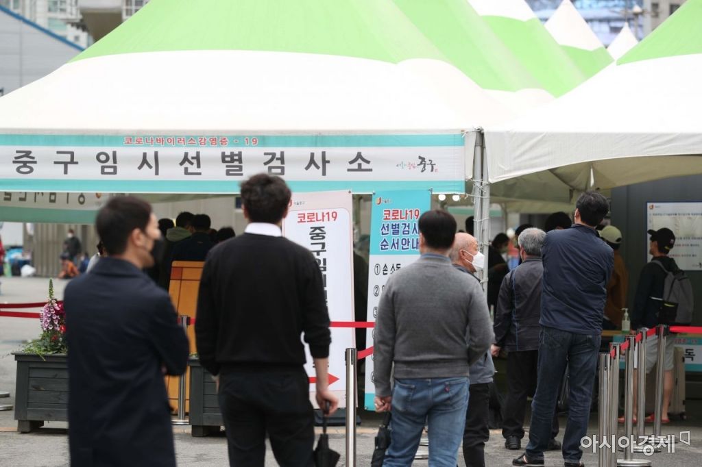 30일 서울역 광장에 마련된 코로나19 중구 임시 선별검사소에서 시민들이 검사를 받기 위해 대기하고 있다. 정부는 이날 현행 수도권 2단계, 비수도권 1.5단계의 거리두기 단계를 다음달 23일까지 3주 더 연장했다. /문호남 기자 munonam@