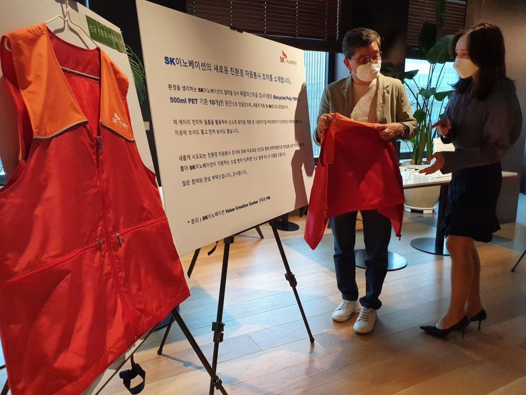회사는 올해 자원봉사 조끼 모두를 친환경 조끼로 바꾸고 직원에게 나눠주기로 했다. 폐 페트병 수만개를 재활용하는 효과가 예상된다. 앞으로 작업복과 유니폼도 같은 방식으로 만들 계획이다. 나아가 그룹 계열사, 협력업체 등에도 알려나가기로 했다. 자회사 SK종합화학의 리사이클 사업과도 연계키로 했다.