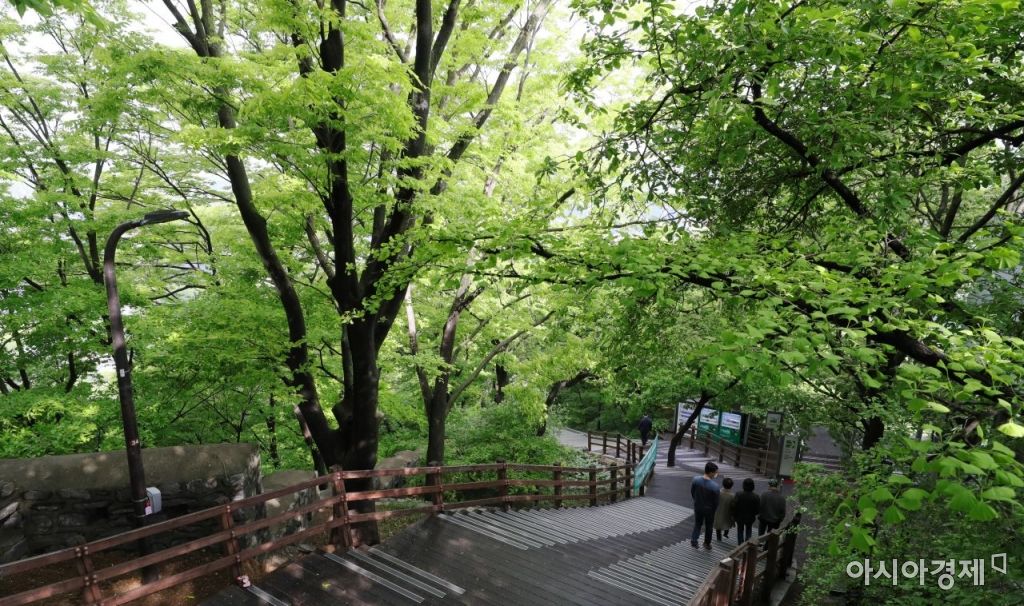 [아시아경제 윤동주 기자] 연둣빛 신록이 어디서나 싱그러운 5월은 봄의 한가운데다. 어린이날인 5일 서울 중구 남산공원을 찾은 시민들이 초록색 나무숲 사이를 거닐며 봄의 정취를 만끽하고 있다. 지난밤 내린 봄비를 머금어서 더욱더 싱그럽다.
