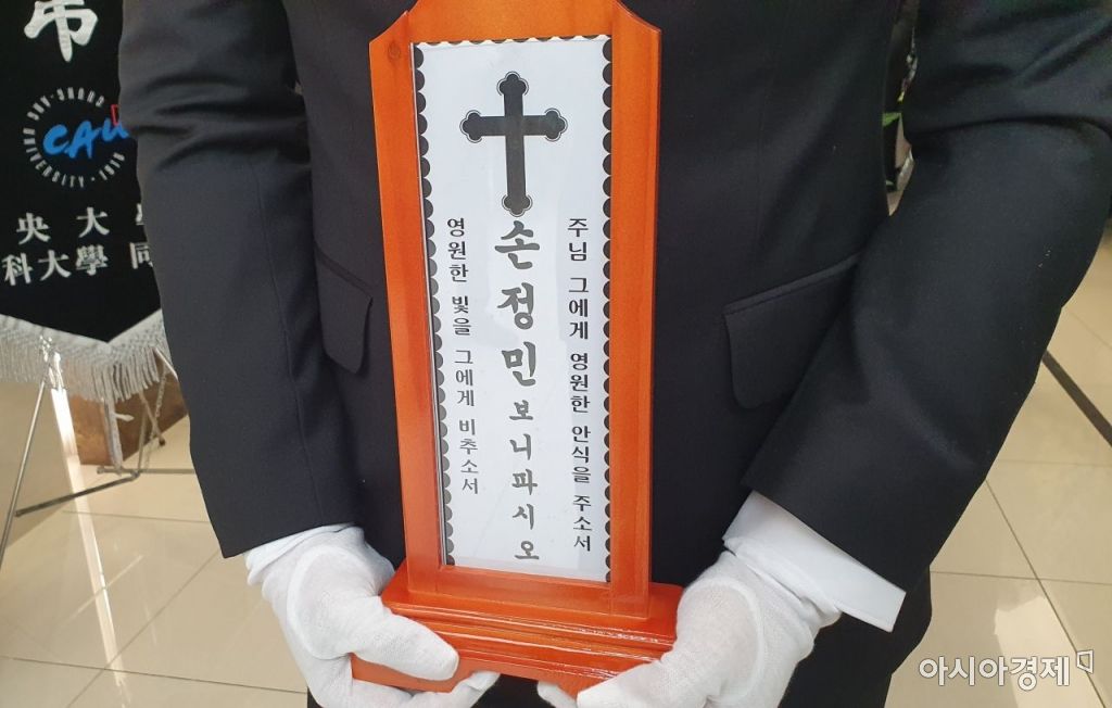 발인은 서울 서초구 서울성모병원에서 고별식을 가진 뒤 오전 9시께 이뤄졌다. 발인 시작 전부터 장례식장 앞은 손씨를 추모하는 대학교 동기 등 조문객들로 가득했다. 발인은 천주교식으로 이뤄졌다. 오전 10시께에는 잠원동성당으로 이동해 장례미사가 치러진다.