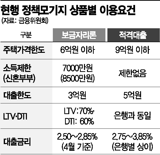하지만 정부의 바람과 달리 시장에선 출시 전부터 "현실성이 부족한 정책"이라는 비판의 여론이 거세다. 40년 모기지가 도입되는 상품(보금자리론·적격대출)의 대상주택 가격 기준(6억·9억원)이 현실과 동떨어졌다는 지적이다.