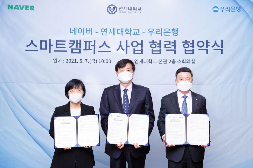 네이버는 연세대, 우리은행과 ‘스마트 캠퍼스 구축 사업 구축·공동 서비스 개발’을 위한 업무협약(MOU)을 맺었다고 7일 밝혔다.