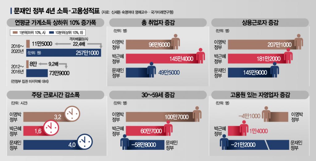 전문가들은 지난해 코로나19사태라는 특수한 상황을 감안하더라도 현 정부의 친노동 행보가 고용과 소득분배 악화를 키웠다고 지적한다. 신세돈 명예교수는 "고용 지표가 참담하기 때문에 소득 지표도 덩달아 나빠지고 다시 일자리가 줄어드는 악순환이 반복되는 것"이라고 말했다.