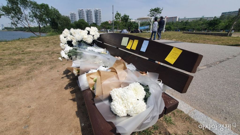 반포한강공원에 손정민 씨를 추모하기 위해 놓인 국화.