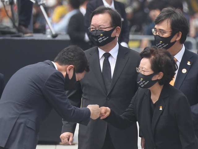 김 대표 대행은 추도식에서 노 전 대통령의 부인 권양숙 여사를 비롯해 더불어민주당 송영길 대표, 김부겸 국무총리, 정세균 전 총리, 유시민 노무현재단 이사장과 인사를 나눴다. 김 대표 대행은 특히 추도식장에 입장하는 권 여사에게 깊이 고개를 숙여 예를 표한 뒤 '주먹 악수'를 했다. 김 대표 대행은 권 여사에게 "가끔 찾아뵙겠다"고 말했다고 전했다.