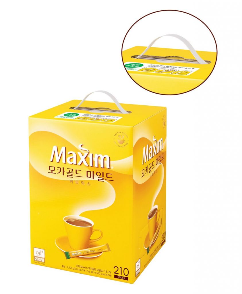 이번에 종이 손잡이가 적용되는 품목은 맥심 모카골드 커피믹스 중 210개입, 220개입, 400개입 3가지 규격이다. 이후 순차적으로 금년 말까지 커피믹스 다른 대규격 제품까지 종이 손잡이를 확대 적용할 계획이다.