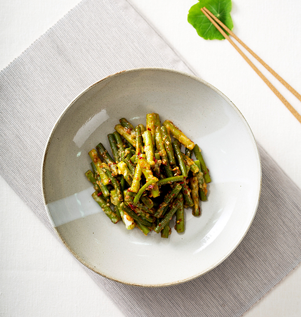4. 마늘종에 양념을 넣어 가볍게 무친다.