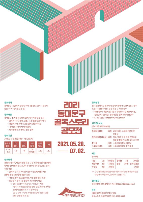 [아시아경제 박종일 기자] 동대문구(구청장 유덕열) 동대문문화재단(대표 구본호)이 주민 참여를 통한 지역 문화 콘텐츠 개발을 위해 ‘동대문구 골목스토리 공모전’을 개최한다.
